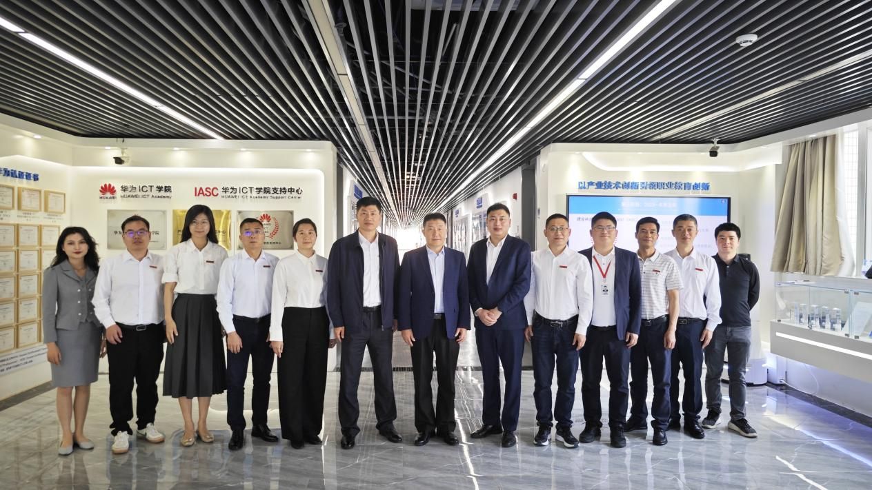 在深圳职业技术大学,陈瑞锦校长一行按专业领域分头开展调研。信息工程学院重点考察了该校与华为共建的“鲲鹏产业学院”,深入了解“课证共生”人才培养模式,包括课程体系与华为5G、鸿蒙系统等技术标准同步更新的实践经验。陈瑞锦校长与信息工程学院负责人就校企双元育人、实训基地共建等议题进行深入探讨。