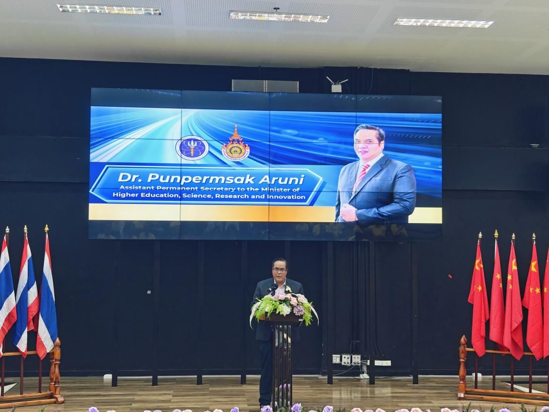 素万纳普皇家理工大学校长巴慕克·温那拉卡,泰国高等教育、科学、研究与创新部部长班彭萨·阿鲁尼,厦门市教育局副局长洪军发表致辞。