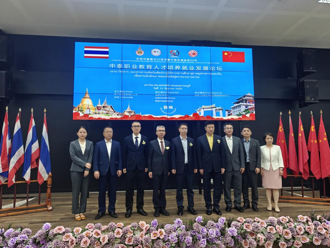 2025年6月15日下午,“中泰职业教育人才培养就业发展论坛”在泰国素万纳普皇家理工大学成功召开。本次论坛由素万纳普皇家理工大学、集美工业职业学院(集美工业学校)共同主办,集美校友总会、集美学校泰国校友会、泰国开放教育集团承办,集美工业职业学院东盟嘉庚职教中心协办。