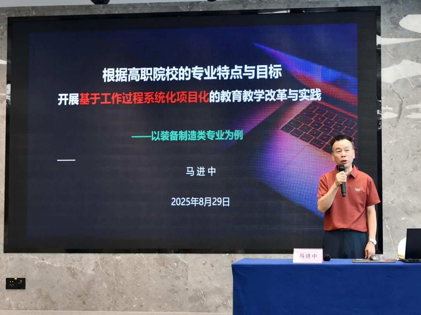 8月29日,2025年高职教育教学人员能力提升培训第二日的学习之旅如约启程。今日培训聚焦“根据高职院校的专业特点与目标开展基于工作过程系统化项目化的教育教学改革与实践”,由厦门城市职业学院的马进中教授主讲。