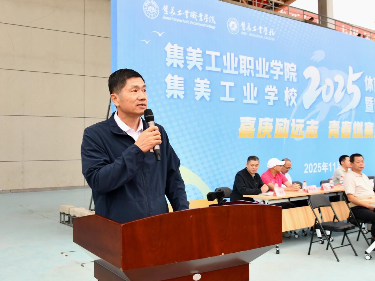 11月11日下午,集美工业职业学院、集美工业学校2025年体育节暨田径运动会开幕式在校田径场隆重举行。集美工业学校党委书记赵丽萍,党委副书记、校长陈瑞锦,副校长欧阳超,副校长黄晓锋,副校长陈飞,以及杏林派出所副所长叶已茂出席开幕式。开幕式由副校长黄晓锋主持。