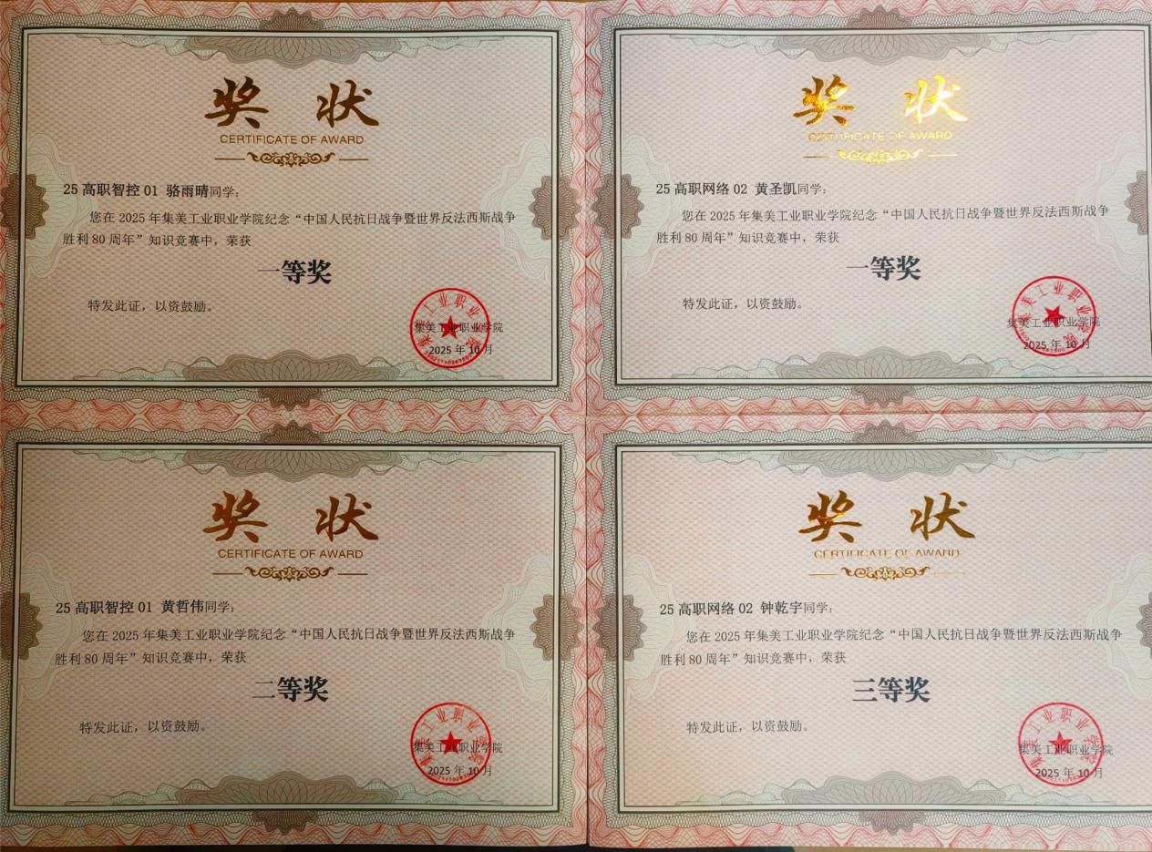 2025年9月份,集美工业学校团委联合思政与人文教研室在校内举办了集美工业职业学院、集美工业学校“中国人民抗日战争暨世界反法西斯战争胜利80周年”历史知识竞赛,旨在通过知识竞赛的形式,让同学们深入了解中国反法西斯战争的历史,弘扬伟大的抗战精神,激励同学们为实现中华民族伟大复兴而努力奋斗。