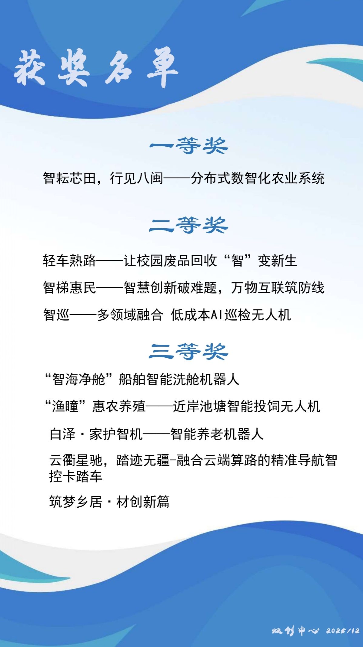 来自学院首届高职生的多支参赛队伍,历经初赛、复赛的层层筛选与严格考核,最终8支队伍脱颖而出,登上决赛路演舞台。8个优质项目覆盖智能制造、农业科技、养老服务、环保创新等多个领域,以多元创新的方案设计,充分展现学院学生的实践智慧与社会担当。其中,“智耘芯田,行见八闽——分布式数智化农业系统”凭借突出的创新性与落地性,成功斩获大赛一等奖。