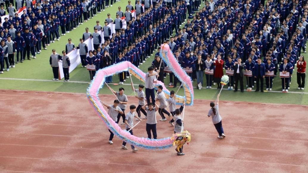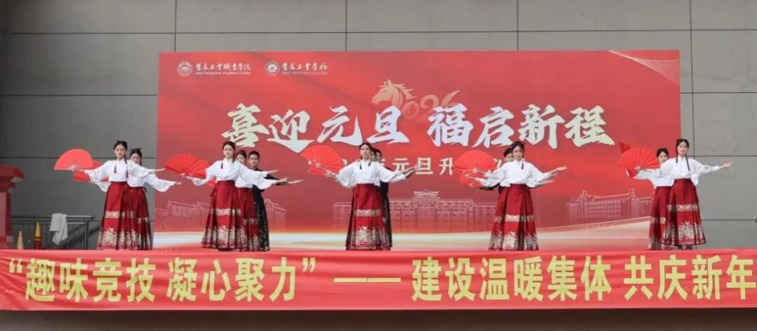 古筝声渐歇,激昂的鼓声骤然响起,全场热情被瞬间点燃。一面鲜艳的五星红旗及四条横幅在人群上方缓缓流动,既将节日喜庆氛围推向顶点,更彰显了集工师生凝心聚力、团结奋进的责任担当,传递出“强国有我、强校有我”的坚定信念。