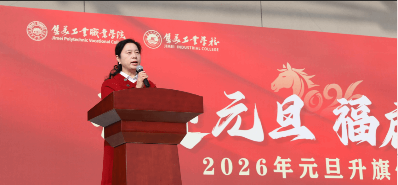 辞旧迎新之际,集美工业学校党委书记赵丽萍致辞,全面回顾2025年学校在高职筹建、教学改革、校企合作等领域取得的跨越式发展成就,肯定了全体师生凝心聚力、攻坚克难的辛勤付出与拼搏坚守。