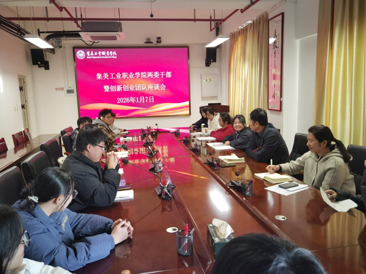 1月7日下午,学校在嘉庚楼十楼会议室召开高职两委学生干部暨创新创业团队座谈会。集美工业学校校长陈瑞锦出席会议并讲话。学校两委各部门负责人及创新创业团队代表参会,学生处主任吴锦欢主持会议。