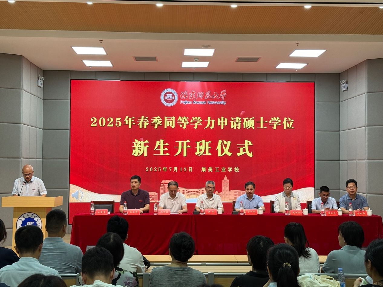 7 月 13 日,2025 年春季同等学力申请硕士学位新生开班仪式在我校顺利举行。此次开班仪式同步在厦门工商旅游学校、厦门信息学校设分会场,三校共启高层次人才培养新篇。厦门市教育局副局长洪军、福建师范大学副校长方千华出席我校主会场活动并致辞,我校相关负责人及新生代表参加仪式。
