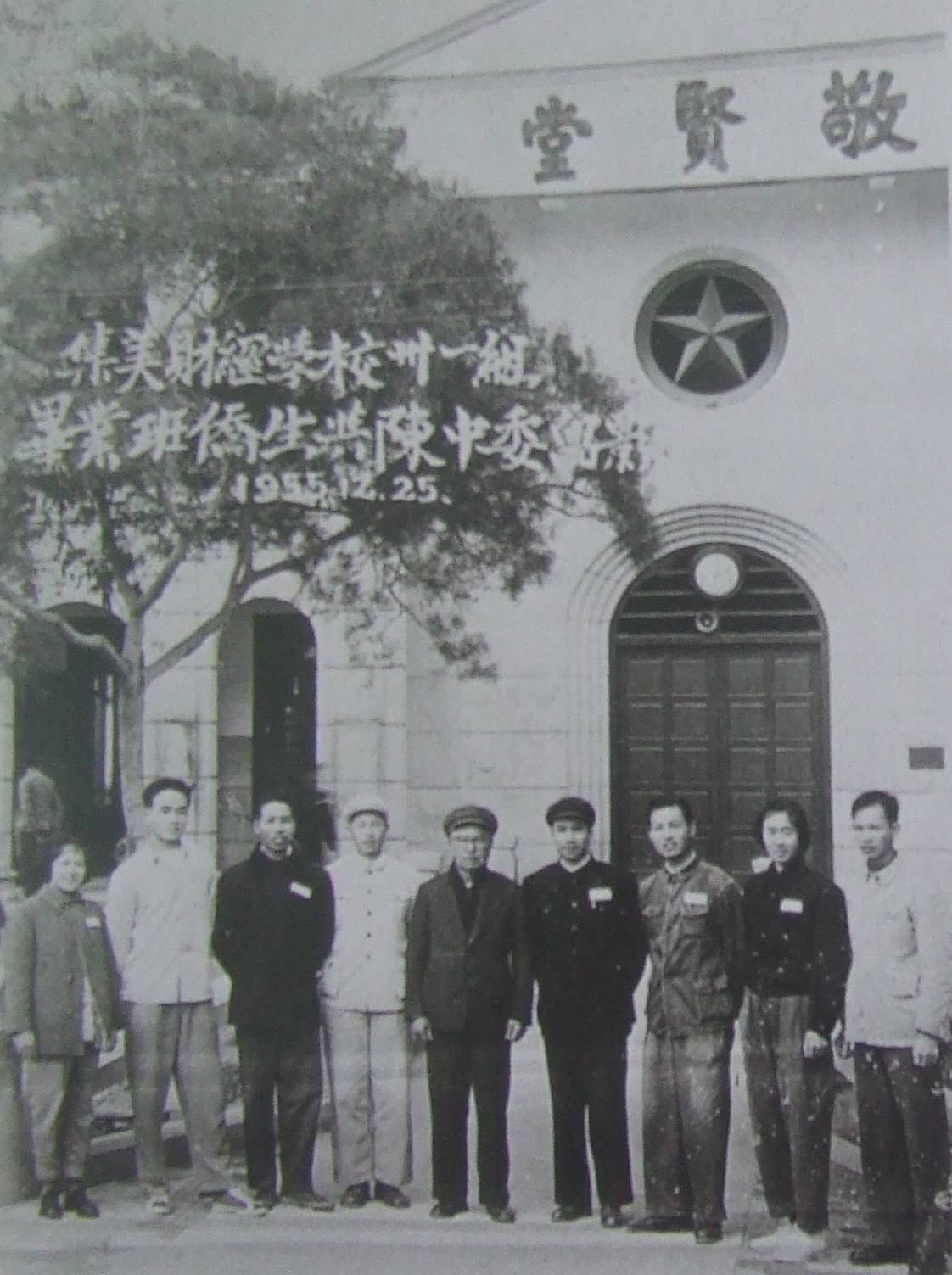 图1:1952年,学校更名为福建集美财经学校,成为财经综合性中等专业学校,主要培养财务会计人员---陈嘉庚先生与集美财经学校师生合影(1955年)A1-1